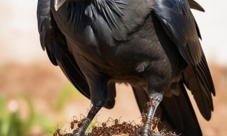 They do it for a powerful reason: ants spray its body with formic acid, a substance that acts as a natural antiparasitic. This acid helps the crow eliminate fungi, bacteria, and parasites, allowing it to recover without the need for medicine.